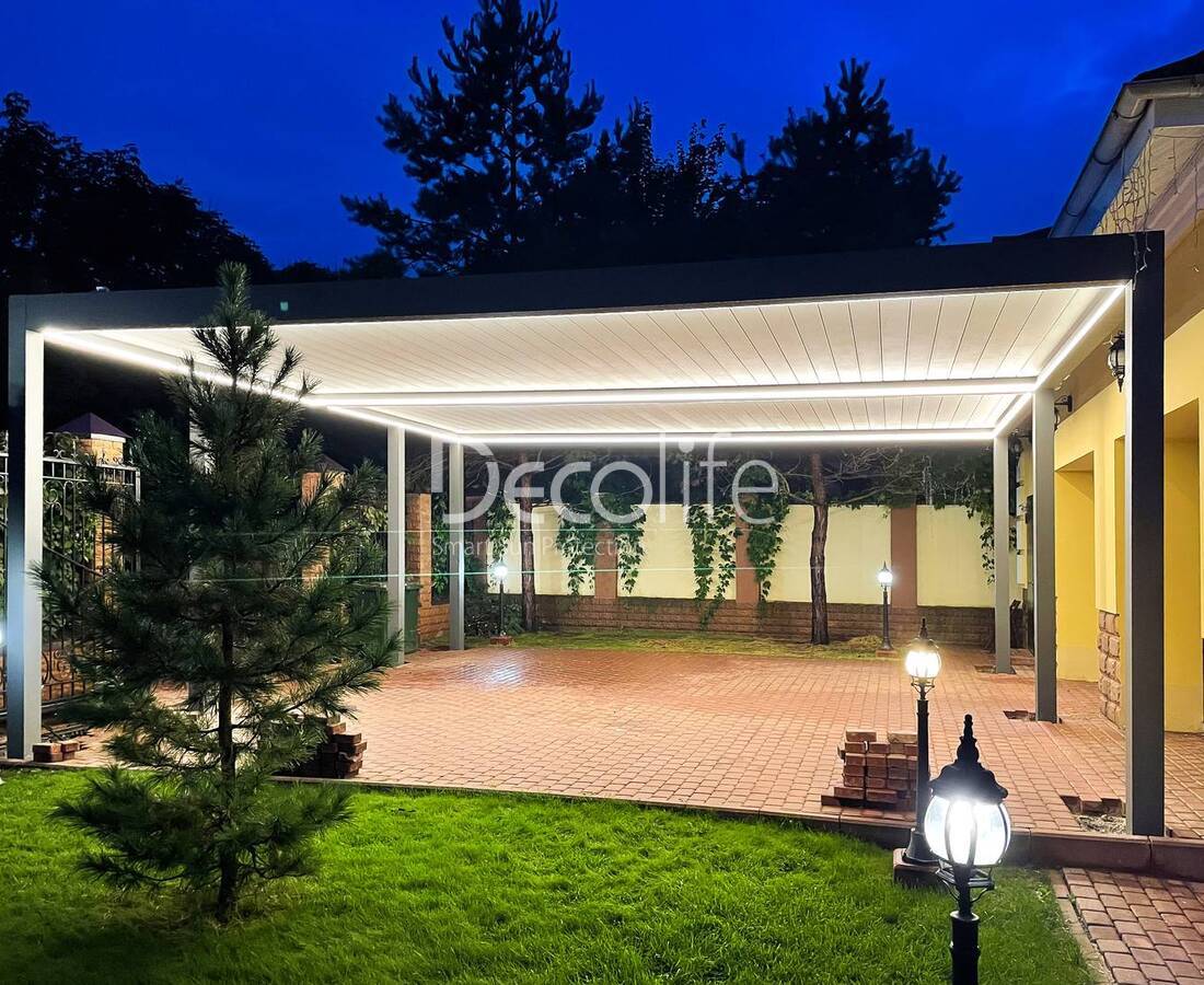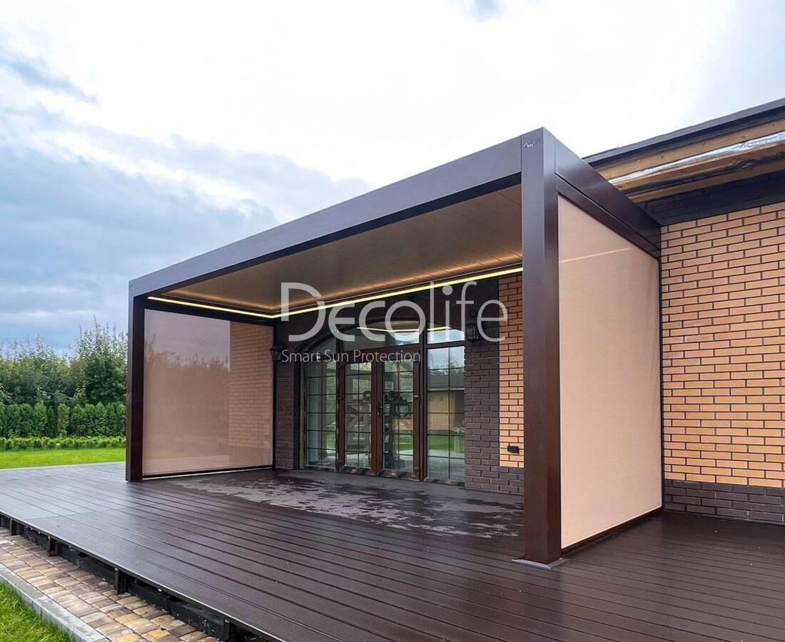 Their task is to create an ideal microclimate. Bioclimatic pergolas come with sliding and turning slats, as well as with PIR sandwich panels.