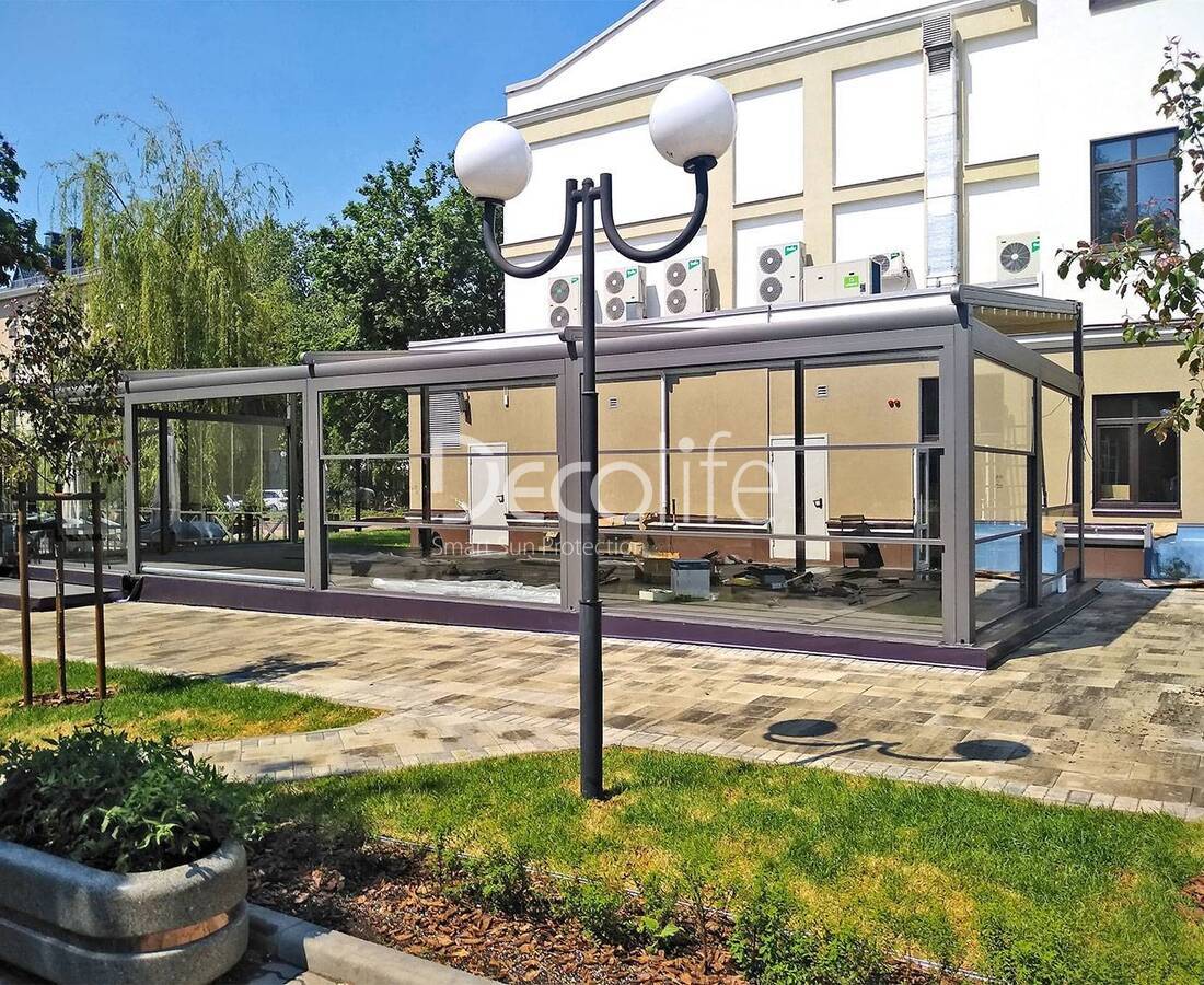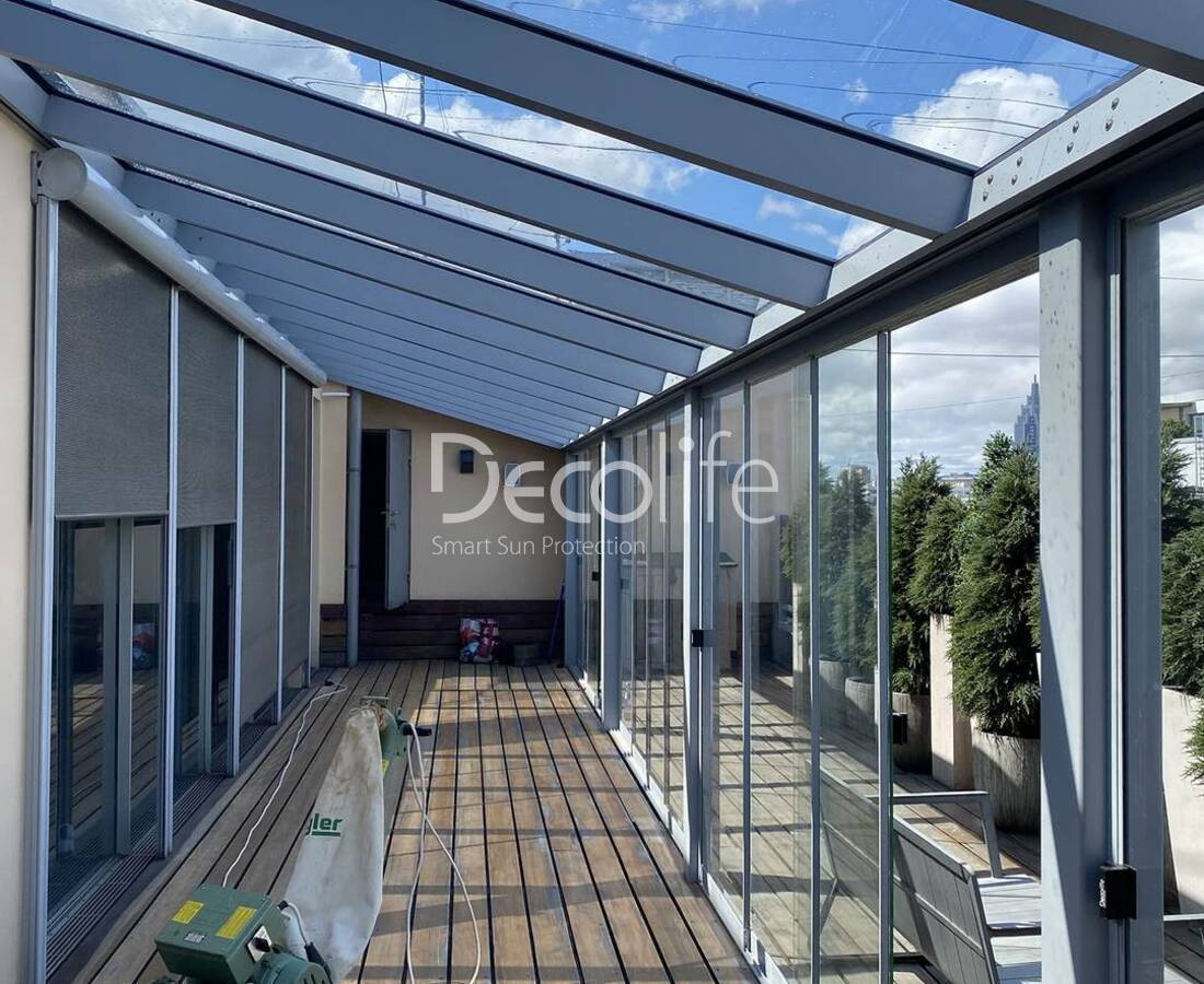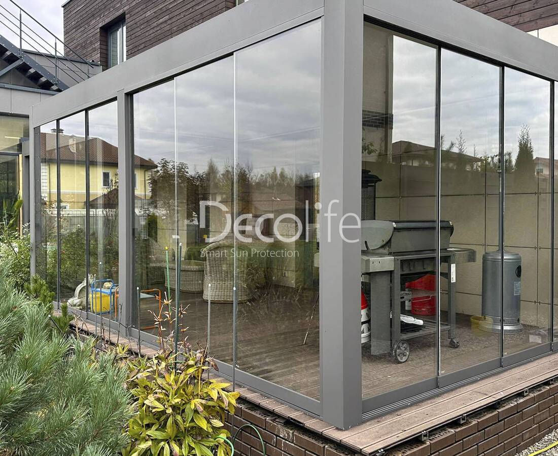 The recommended panel height is 3 meters, the maximum number of glass panels is 12 pcs. Compatible with the entire Decolife range of pergolas.